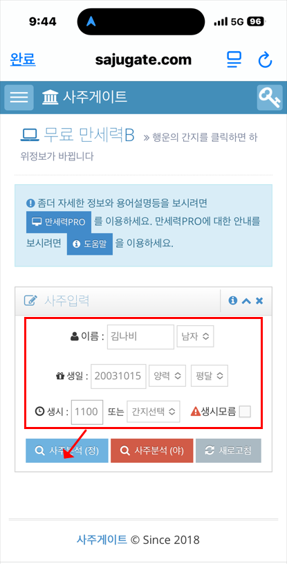 - 기본은 양력 기준으로 입력하세요. (음력을 쓰셨다면 변환 후 입력)