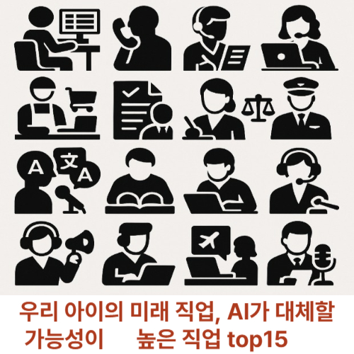 이 글에서는 AI가 대체할 가능성이 높은 직업군 15가지를 선정하고, 그 이유와 함께 대안이 될 수 있는 미래 직업까지 함께 소개합니다. 우리 아이의 진로를 함께 고민하는 마음으로 읽어주세요.